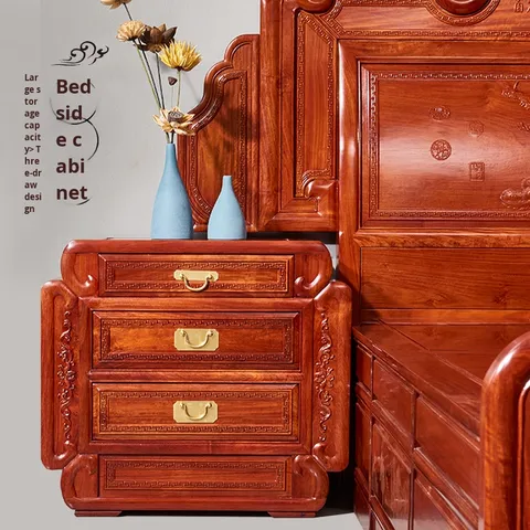 เรดวู้ดชุดเตียงนอนขนาดใหญ่ Luohan แบบคู่สำหรับห้องนอนสไตล์ประจำชาติไม้มะเกลือแอฟริกันมีกลิ่นหอมไฟฟ้าสำหรับใช้ในครัวเรือน